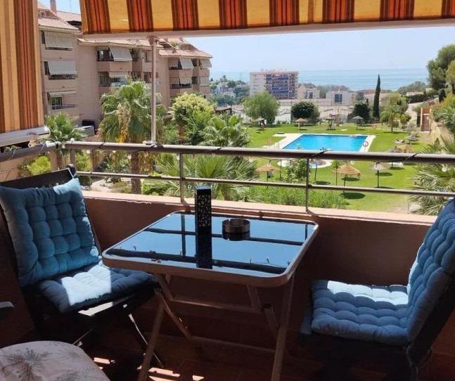 Vivienda muy bien ubicada con vistas despejadas al mar. Se distribuye en hall de entrada, salón independiente con salida a una coqueta terraza, tres dormitorios, dos baños, cocina, lavadero y garaje incluido en el precio. Se situa en una urbanización con todo tipo de servicios como su jardín, piscina, barbacoa, pista de tenis y pádel, zona infantil...