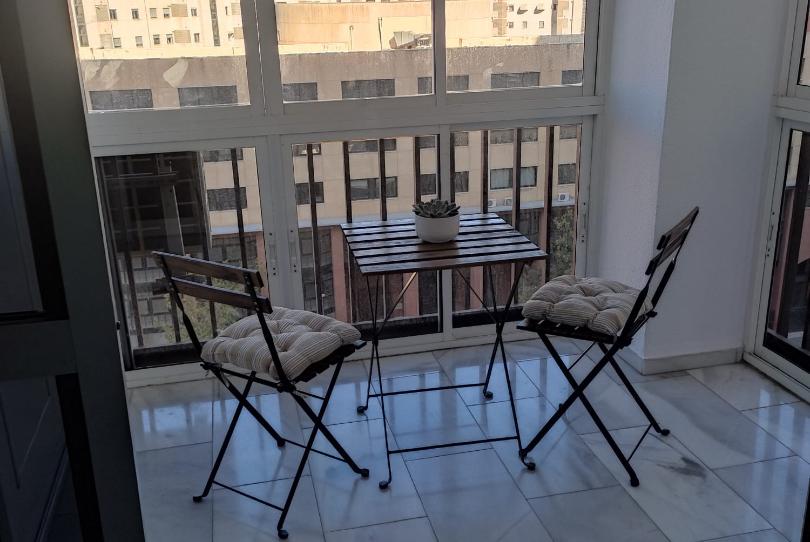 El piso ofrece un diseño interior moderno y funcional. Originalmente de tres habitaciones, se ha transformado en un espacioso hogar de dos dormitorios para priorizar la amplitud de sus zonas comunes, integrando una acogedora salita comedor con la cocina. No obstante, la versatilidad de la distribución permite volver a crear fácilmente la tercera habitación si se desea.