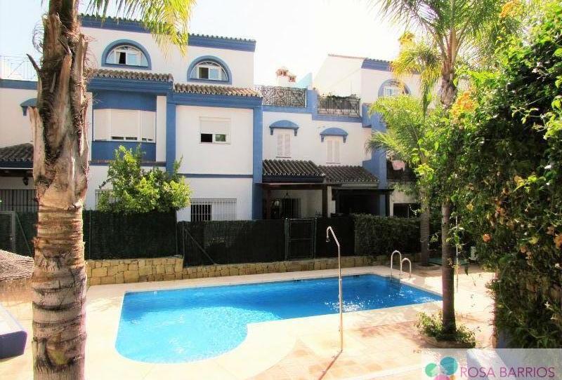 Magnífica casa adosada en urbanización tranquila de pocos vecinos en San Pedro pueblo, cerca de ambulatorio, colegio, instituto, guardería, tiendas... a dos pasos de Guadalmina y sus campos de Golf y pocos kilómetros de la playa y puerto Banús.Consta de 3 plantas, en la baja tenemos porche de entrada, recibidor, cocina equipada con office, aseo, salón comedor con chimenea y patio de unos 25 m2.En primera planta hay 3 dormitorios, 2 baños completos (uno en suitte), 2ª planta 2 dormitorios y otro baño mas solarium de unos 20 metros, parking en la misma puerta, piscina comunitaria.