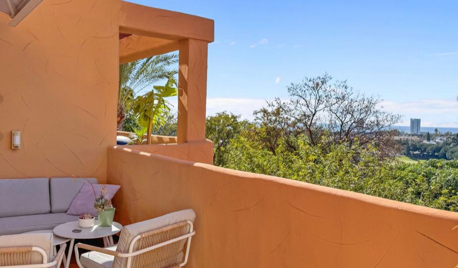 This elegant apartment is perfectly situated in the exclusive area of Elviria, Marbella East, overlooking the renowned Santa María Golf Course. With its southwest orientation, the property enjoys sunshine all day long, offering panoramic views of the golf course, the Mediterranean Sea, and the surrounding natural beauty.