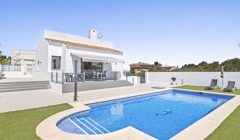 Located in El Faro, Mijas Costa, the villa consists, on the ground floor, of an open fitted kitchen (coffee maker, teapot, oven, hob, fridge freezer, microwave, washing machine), a living room opening onto a furnished terrace with a view of the swimming pool and the garden, a bedroom with a 150 cm double bed and a bathroom, a bedroom with a king size double bed as well as a bathroom private with W.C, a bedroom with 150 cm double bed. Independently another space with a bedroom with two single beds and a double bedroom as well as a bathroom with W.C.