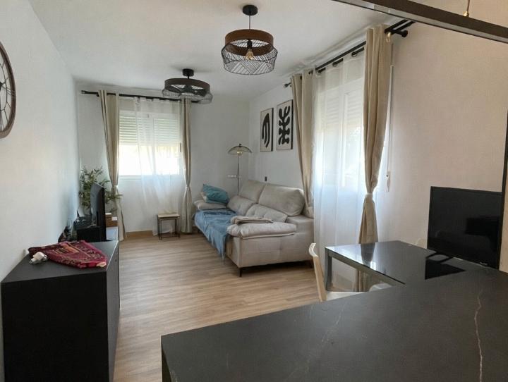 Cuenta con una distribución práctica y cómoda: un pequeño pasillo de entrada, dos dormitorios, un amplio baño completo y un luminoso espacio abierto de salón-comedor con cocina integrada. Además, la habitación principal dispone de armario empotrado.