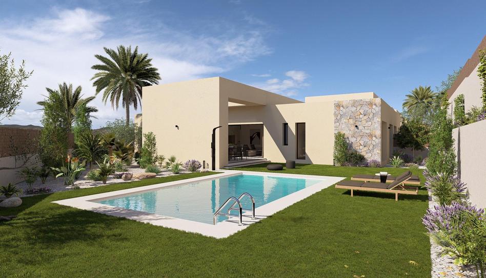 Esta villa dispone de un diseño moderno y funcional con 223 m2 en una sola planta distribuidos en 3 dormitorios, dos baños y un aseo para visitas, cocina y un amplio salón comedor muy luminoso que conecta a través de grandes ventanales con un amplio jardín privado con piscina.