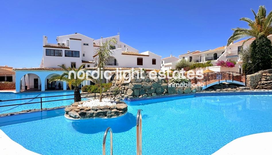 El entorno ofrece todas las comodidades: supermercado a dos minutos andando, piscinas con bares y restaurante, zonas verdes, vigilancia nocturna y ambiente tranquilo. También cuenta con parada de autobús cercana con conexión directa a Nerja centro y Málaga.