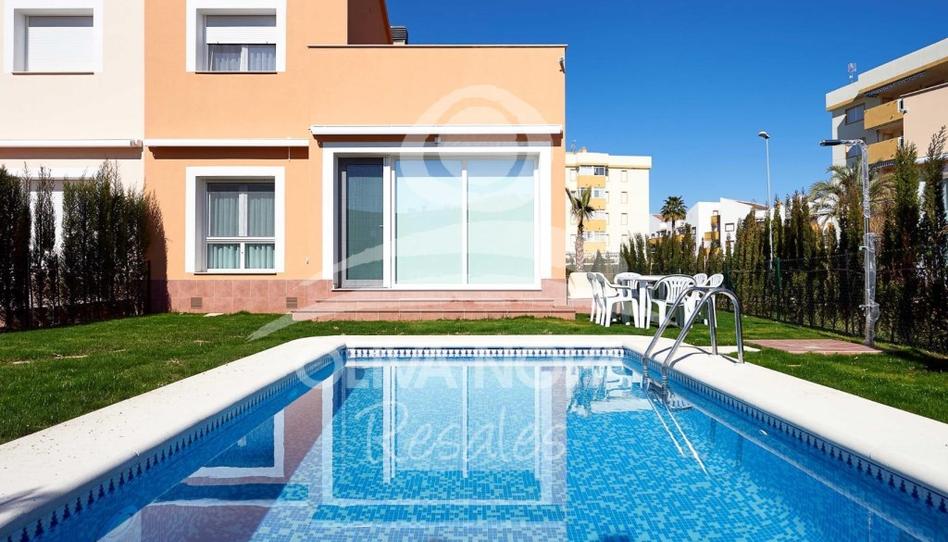 Villa adosada de 2 dormitorios distribuidos en 2 plantas situada en el residencial Malibú Beach III, con cocina abierta totalmente equipada. Cuenta con una zona de jardín y piscina privada. Además, el residencial cuenta con piscina comunitaria, amplias zonas ajardinadas y una plaza de parking dentro del recinto del residencial. Se encuentra a tan solo 300 metros de distancia de la playa y a tan solo 500 metros del Centro Ecuestre Oliva Nova.