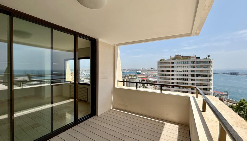 Situado al final del paseo marítimo que les cautivará por sus impresionantes vistas panorámicas al mar, a la bahía de Palma, a la catedral y a la sierra. También puede verse la isla de cabrera. Este elegante edificio cuenta con portero físico y gran portal de lujo. Finca privada, cerrada y ajardinada. Piso muy silencioso y comunidad muy tranquila (en general, propietarios). Fachada del edificio totalmente reformado. Azotea de uso libre con vistas espectaculares a escasos peldaños de la puerta del Ático.
