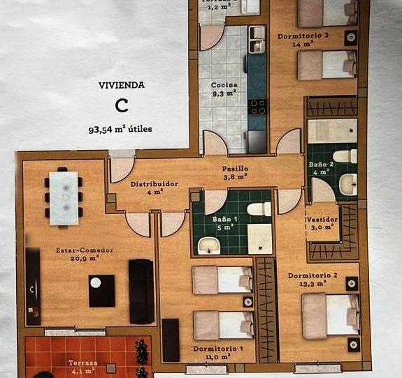 Se vende piso prácticamente nuevo, construido en el año 2021, amueblado y con la cocina equipada.