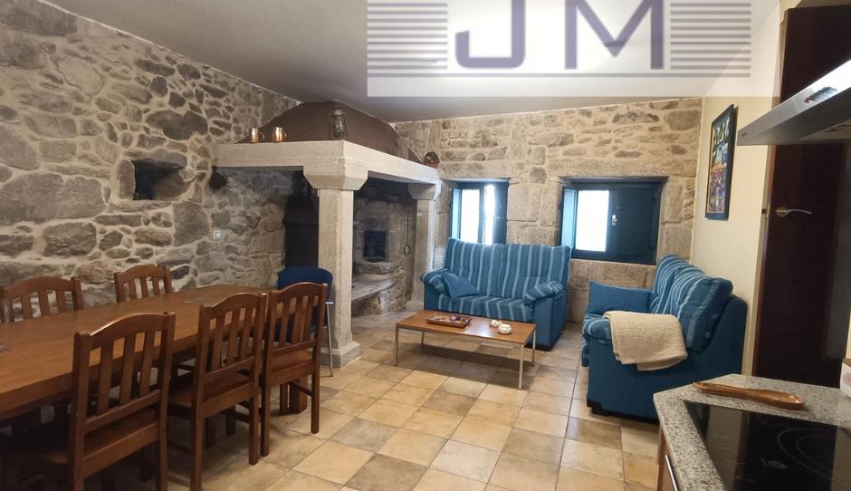 En planta baja tiene el garaje, un baño, una zona de lavandería, una amplia estancia destinada a cocina con sala de estar y lareira con horno de piedra y tiene también la salida a un patio con zona de barbacoa. En la primera planta tiene 3 habitaciones y dos baños.