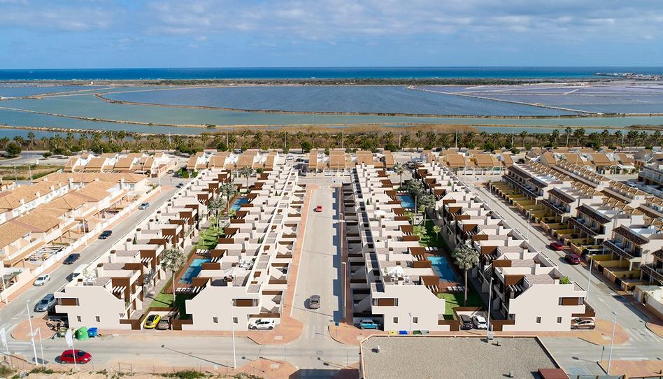 El residencial se completa con una zona comunitaria central que dispone de jardín, dos piscinas comunitarias y aparcamiento para cada vivienda. La ubicación es ideal, en segunda línea de playa y con todas las comodidades accesibles a pie, como bares, tiendas y restaurantes. Además, cuenta con varios campos de golf cercanos y el Aeropuerto Internacional de Murcia se encuentra a solo 30 minutos.