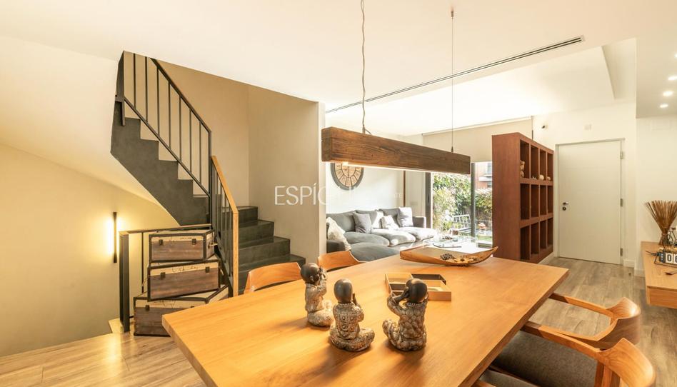 La vivienda se articula en cuatro plantas perfectamente conectadas. El acceso principal se realiza a través de un cuidado jardín privado que da paso a un distinguido salón-comedor bañado en luz natural, creando un ambiente cálido y sofisticado. En esta misma planta encontramos un aseo de cortesía y una elegante cocina independiente, completamente equipada, con despensa y zona office. Desde aquí se accede a la terraza posterior con área de barbacoa, un espacio ideal para veladas al aire libre y encuentros sociales en un entorno íntimo.