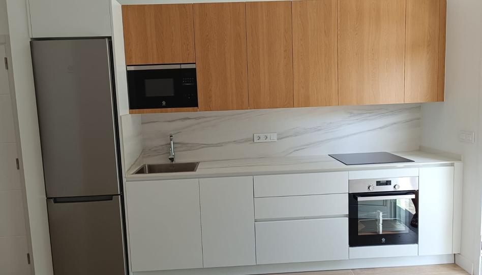La cocina, de diseño moderno y equipada con materiales de alta calidad, está lista para estrenar. El estudio cuenta con pavimento porcelánico imitación madera, que aporta calidez y elegancia, y un baño totalmente alicatado con revestimiento porcelánico, grifería empotrada, nicho jabonera, muebles de baño Roca y mampara de cristal.