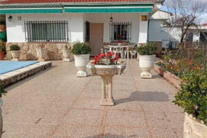 En venta chalet independiente en parcela de 1000 m, con vivienda para entrar a vivir. Cuatro habitaciones, baño completo, chimenea, salon, cocina,. Exterior con piscina, barbacoa con cocina, zona de comer, huerto, garaje, pozo.