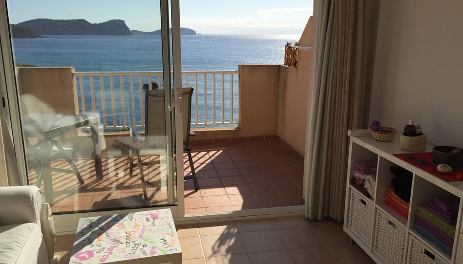 Se vende apartamento con espectaculares vistas al mar en primera línea de mar en Es Canar, Edificio Llevant, 56 m2 construidos, 1 habitación doble, 1 baño, cocina americana equipada, salón comedor con salida a una terraza con preciosas vistas al mar y a los amaneceres, aire acondicionado centralizado, doble acristalamiento, suelos de gres, armarios empotrados, 4ª planta con ascensor, piscina y jardín comunitarios, situado en un entorno natural a solo 300 metros de las playas de Cala Nova y Es Canar.