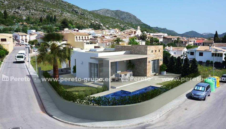 PROYECTO DE VILLA. Chalet de diseño minimalista y rústico a la vez en Tormos, Alicante. Se trata de un proyecto de construcción de un chalet que combina la modernidad de la estructura de hormigón con paredes de piedra natural, todo ello sobre una parcela totalmente plana de 407 m2. En su fachada destaca su espectacular porche cubierto realizado con una sola pieza de hormigón que se sustenta con una pata . La vivienda consta de 113 m2 distribuidos en salón comedor, cocina, porche cubierto, 2 dormitorios, uno de ellos con baño en suite, y un aseo ducha. En el precio se incluye también una piscina 9 X 3 con foco y escalera interior de obra, terraza exterior de aprox. 47 m2, parking chapado con piedra natural (aprox. 47 m2), acceso peatonal desde la calle hasta la vivienda, muro en el linde de la parcela con la calle, puerta corredera para acceso del coche, puerta peatonal e interfono, aceras alrededor de la vivienda, y por supuesto, unas altas calidades de construcción adaptadas al estilo de la casa. Se incluyen proyecto de construcción y licencia. Ya que se trata de un proyecto el cliente podrá elegir de antemano cualquier variación en el plano o en las calidades de construcción. Tormos es un pequeño y tranquilo pueblo, que se encuentra en el corazón de la Costa Blanca, a tan sólo 20 minutos de las playas de arena, a 1 hora de los aeropuertos de Alicante y Valencia, y a sólo 15 minutos del mayor centro Comercial de la zona.
