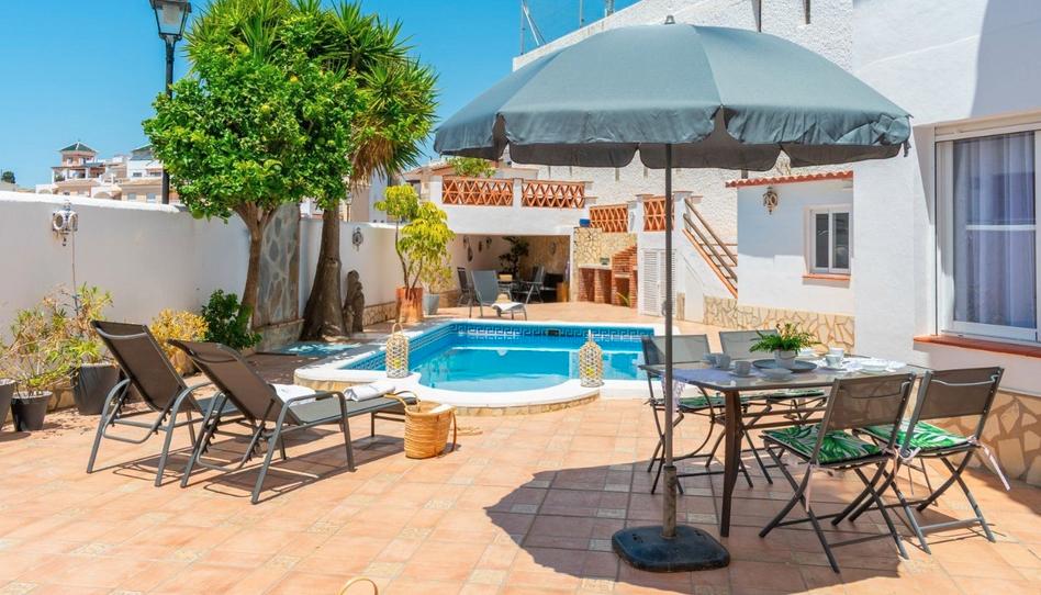Fabulosa casa semi adosada, Tiene construidos 110 m2, se encuentra en una parcela 338 m2, completamente renovado, cuenta con 2 dormitorios, 2 baños (1 en-suite), también tiene 2 aseos , la cocina está completamente equipada, la propiedad se vende totalmente amueblado, materiales de primera calidad, suelos de mármol, chimalli, aire acondicionado. En el salón comedor tiene chimenea, trastero, piscina privada. Garaje cerrado. Muy cerca de todo y al mar.