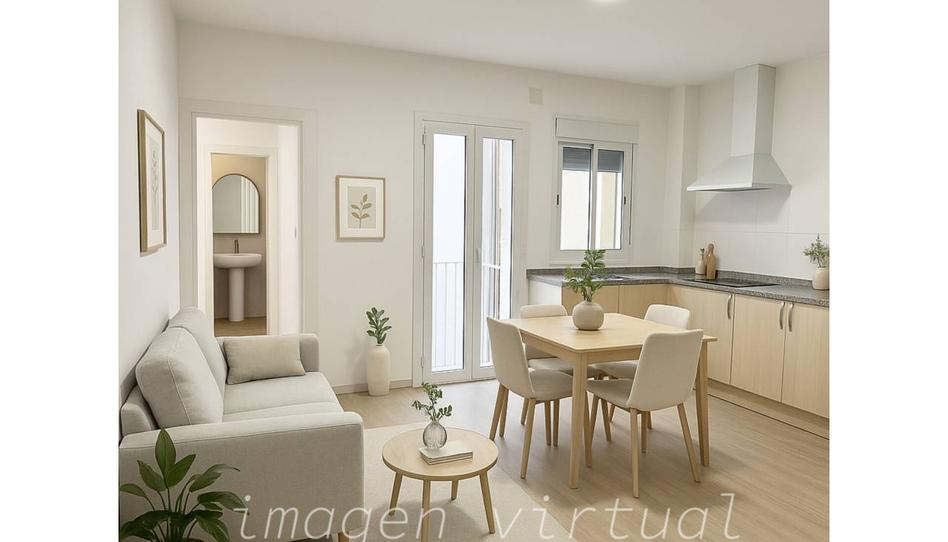 La vivienda dispone de salón-comedor con acceso a balcón exterior, cocina abierta al salón, dos habitaciones dobles con balcón exterior y un baño completo con ducha. Además, cuenta con un balcón/galería en la zona de cocina, ideal como zona de lavandería o pequeño espacio adicional.