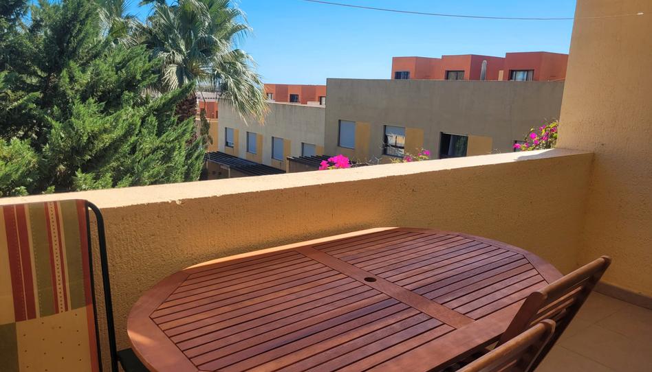 Cuenta con dos dormitorios, 1 baño, cocina independiente, completamente equipada con acceso a un patio lavadero, salón y gran terraza apergolada con vistas a la urbanización y piscinas.