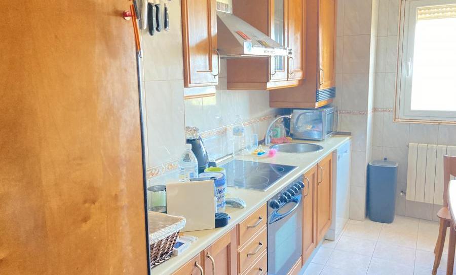 La vivienda está dividida en 3 habitaciones (una en planta baja), 1 baño, 1 aseo. 1 salón y cocina amueblada y con electrodomésticos.
