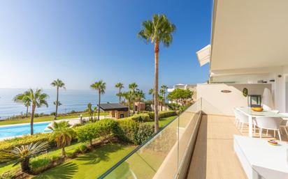 Apartamento contemporáneo situado en primera línea de playa, con impresionantes vistas al mar y el lugar perfecto para disfrutar de amaneceres únicos. Ubicado en la exclusiva urbanización Horizon Beach, construida por el prestigioso promotor Taylor Wimpey, destaca por su diseño moderno y sus acabados de alta calidad. La cuidada comunidad ofrece acceso directo a la playa, jardines paisajísticos y una piscina exterior climatizada para disfrutar durante todo el año. Además, cuenta con zonas comunes con duchas, tumbonas y una amplia terraza cubierta ideal para relajarse. Su ubicación es inmejorable: a tan solo 5 minutos en coche del centro de Estepona y del Puerto de La Duquesa, con todos los servicios a mano. La propiedad incluye una cómoda plaza de garaje subterránea y un amplio trastero situado justo enfrente de la plaza. ¡Una oportunidad única frente al mar que no puedes dejar escapar!