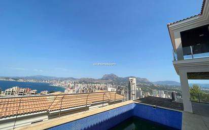 Espectacular Villa de lujo en Benidorm ( Rincón de Loix). Alicante Las vistas a todo Benidorm y Alicante. Parcela de 1000 mt2. Casa de 900 mt2 entre 3 plantas ( garaje, planta 0 y planta 1). 4 dormitorios en suite. Piscina privada con ducha de agua caliente y fría. Garaje para varios coches. Zona de barbacoa. Mucho espacio disponible para habilitar un apartamento grande y con vistas para invitados. Benidorm es una ciudad y municipio español de la provincia de Alicante, en la Comunidad Valenciana. Está situada a orillas del mar Mediterráneo, en la comarca de la Marina Baja, de la que es su municipio más denso y poblado con una densidad de 1792 hab/km² y 68 721 habitantes en 2019. Es la capital turística de la Comunidad Valenciana. Conocida como la «Nueva York del Mediterráneo», Benidorm es la ciudad con más rascacielos de España, la ciudad con más rascacielos por habitante del mundo y la segunda ciudad con más rascacielos por metro cuadrado del mundo, solo detrás de Nueva York. Se trata de uno de los destinos turísticos más importantes y conocidos de España y de todo el Mediterráneo gracias a sus playas y su vida nocturna, llegando a alcanzar los 400 000 habitantes en verano.
