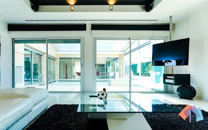 Ref. 371 Sensacional casa de diseño en una de las zonas residenciales más exclusivas de Gandia. Tiene una superficie de 363 m2 distribuidos en tres plantas, sótano, planta baja y primera planta. Es una construcción de calidad , con acabados impecables y todo de estilo moderno. Tiene una excelente distribución, cómoda y funcional, con todos los espacios perfectamente aprovechados. El corazón de la casa es la planta baja, donde todo gira alrededor de una terraza interior totalmente acristalada, donde encontramos una bonita piscina y un jacuzzi, esta terraza tiene el techo móvil, que podemos abrir y cerrar a nuestro antojo, también tiene un precioso salón, una espectacular cocina con isleta central, totalmente equipada con electrodomésticos de última generación, un aseo de cortesía y un arto de lavado y planchado. La primera planta está dedicada a los dormitorios, concretamente dispone de tres dormitorios y dos cuartos de baño completos, destacar la suite principal, de una gran amplitud y totalmente diáfano donde hay un baño completo, con ducha de hidromasaje, y un vestidor. El sótano tiene una superficie de 140 m2 y tiene varias zonas diferenciadas, concretamente un gimnasio con cuarto de baño completo, una enorme zona de estar con pantalla de cine incluida y el un garaje con capacidad para varios coches y con puertas de acceso automáticas. En el exterior de la vivienda hay una preciosa terraza con zona de barbacoa. Hacer mención también a las excepcionales instalaciones que posee la casa, ascensor, un importante sistema de seguridad con cámaras incluidas, persianas automáticas, aire acondicionado y calefacción por conductos, puertas de seguridad, etc. Si quieres vivir en una exclusiva vivienda, con todas las comodidades que puedas imaginar y con una ubicación inmejorable, contacta con nosotros y te la enseñamos sin ningún tipo de compromiso. ¡¡Si sueñas con un hogar, Claumar te lo puede proporcionar!!