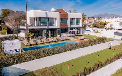 Ubicada majestuosamente en la codiciada Nueva Milla de Oro, esta villa contemporánea es una joya frente al mar, rodeada de un extenso jardín privado y una espléndida piscina que se fusiona con el azul del Mediterráneo. Este oasis familiar es el escenario perfecto para un estilo de vida vibrante al aire libre, especialmente para aquellos que disfrutan de los deportes acuáticos, con la playa a pasos de distancia desde su propio jardín frontal. Beach House 1 se destaca por su diseño moderno y de planta abierta, donde las amplias terrazas de techo a suelo invitan a la luz natural y a las vistas panorámicas del mar a llenar cada rincón. En su interior, los interiores contemporáneos se funden con acabados de lujo, creando un ambiente de elegancia y confort. Con cinco dormitorios espaciosos, cada uno con su propio baño en suite, la villa ofrece un espacio íntimo y relajante con vistas impresionantes. Pero la verdadera joya de esta propiedad es su impresionante terraza en la azotea, un santuario de entretenimiento con múltiples áreas de descanso, un jacuzzi y una vista sin igual del Mar Mediterráneo, ideal para contemplar las puestas de sol más espectaculares. En el sótano, una sorpresa adicional aguarda: un lujoso spa con piscina cubierta climatizada y sauna, donde el lujo y el relax se fusionan en un ambiente de serenidad total. Ubicada estratégicamente en Playa del Saladillo, conocida por sus playas vírgenes y sus imponentes dunas de arena, la villa está cerca de excelentes restaurantes, como el famoso Chiringuito de Pepe's Beach y La Antiqua. Además, el Beach Club Anantara (Villa Padierna) está a solo unos minutos a pie, mientras que San Pedro y Puerto Banús se encuentran a poca distancia en coche, ofreciendo una amplia gama de opciones de entretenimiento y servicios de primera clase.