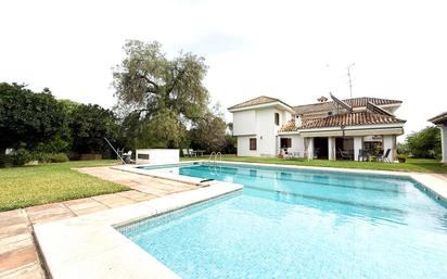 Magnífico chalet independiente con gran parcela, situado en una de las zonas residenciales más exclusivas y tranquilas del Aljarafe sevillano. Ideal para disfrutar en familia y a tan solo 10 minutos andando de supermercados, guarderías, colegios, clubes deportivos y todo tipo de comercios, además de contar con excelente conexión por metro y carretera, a solo 10 minutos en coche del centro de Sevilla. Características principales: -Superficie construida: 578 m² distribuidos en dos plantas y amplio sótano. -Parcela: 2.373 m² con jardín, piscina privada, merendero y amplia zona de aparcamiento para vehículos. Distribución de la vivienda: Planta baja: -Hall de entrada. - 2 Salones; Un Salón-comedor a dos alturas dividido en dos espacios: comedor formal con chimenea y salita de estar. Y un segundo salón a doble altura que divide se divide en un acogedor espacio con chimenea y una sala de estar. - Porche cubierto junto a la vivienda, ideal como zona chill-out o comedor de verano. - Espaciosa cocina independiente con zona de lavadero. - Patio interior que aporta gran luminosidad natural a salón, comedor y cocina. - Aseo - 1 dormitorio ideal para invitados o despacho. - Pasillo con armarios empotrados para almacenamiento extra. Primera planta: Distribuida en tres alas con 6 dormitorios amplios, luminosos y con armarios empotrados. Además el dormitorio principal incluye baño en suit con bañera, placa de ducha y doble lavabo. En esta planta encontramos un baño adicional en el pasillo con placa de ducha. Sótano: De grandes dimensiones, con múltiples posibilidades de uso como sala de juegos, gimnasio, bodega, trastero, etc. Exterior con jardín: -Merendero cubierto con barbacoa, fregadero y mesa de obra, perfecto para celebraciones al aire libre. -Piscina privada de gran tamaño. Una propiedad única para quienes buscan espacio, privacidad y calidad de vida en una ubicación privilegiada. ¡No pierda la oportunidad de visitarla y descubrir su nuevo hogar! Información adicional: Gastos de notaría, registro, impuestos e intermediación inmobiliaria del 2% más Iva sobre el precio de compraventa no incluidos. Dentro de los servicios inmobiliarios que se le presta a la parte compradora, está incluida la tramitación y gestión hipotecaria, consiguiendo las mejores condiciones del mercado actual. Dpto. Financiero propio. D. I. A (Documento Informativo Abreviado) a disposición del consumidor.