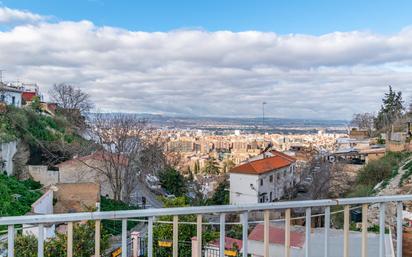 Gran casa con terreno y cuevas situada en Barranco del Abogado. La casa está dividida en 3 plantas, distribuida en planta baja con patio, aseo, habitación y 2 habitaciones en cueva, planta primera salón, cocina, recibidor, dormitorio y baño, planta segunda salón y 2 habitaciones, planta tercera 2 terrazas con estupendas vistas a Granada y 2 habitaciones + baño. Anexo a ésta vivienda tiene una cueva dividida en 5 estancias. La rodea terreno y tiene zona para garaje. Todo sobre una superficie de 500m2. Ideal también para dividir en apartamentos!