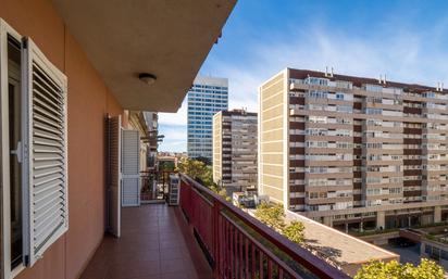 Piso con terraza esquinera y vistas despejadas junto al Parque Joan Miró Piso alto, exterior y muy luminoso, situado en la calle València, en el corazón de la Nova Esquerra de l’Eixample, a poca distancia del centro comercial Las Arenas, la plaza España, la avenida Roma y la estación de Sants. Con una superficie de vivienda de 93 m² construidos, destaca por su gran terraza esquinera que rodea toda la propiedad, orientada a dos calles y con vistas amplias y arboladas, que aportan luz natural durante todo el día. La distribución es cómoda y funcional: – Amplio salón-comedor con salida directa a la terraza. – Cocina independiente totalmente equipada, con zona de lavadero anexa. – Cuatro dormitorios (dos dobles y dos individuales). – Dos baños completos, uno de ellos integrado en la suite principal, con bañera de hidromasaje. La vivienda se encuentra en buen estado y lista para entrar a vivir, con suelos de parquet, cerramientos de aluminio, calefacción de gas y aire acondicionado en el salón. Localizada en una finca señorial de obra vista de los años 70, con ascensor y servicio de conserjería, recientemente renovada y con un vestíbulo elegante de estilo contemporáneo. Una propiedad luminosa, funcional y bien comunicada, ideal para familias o para quienes busquen un hogar con exterior y excelente conexión con toda la ciudad. Zona tranquila y consolidada, con transporte público (metro L1-L3-L5, FGC y bus), comercios y servicios a pocos metros.