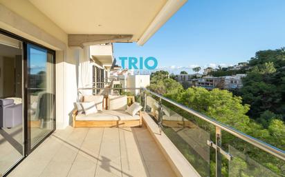 Exclusivo piso moderno en Cas Català – amplitud, diseño y ubicación privilegiada Ubicado en una de las zonas residenciales más demandadas y elegantes de la costa suroeste de Mallorca, este espectacular apartamento de aproximadamente 170 m² representa una oportunidad única para quienes buscan calidad de vida, confort y una ubicación inmejorable. Cas Català destaca por su ambiente tranquilo, su cercanía al mar y su excelente conexión con Palma y las zonas más exclusivas de la isla. La vivienda se caracteriza por su diseño moderno y funcional, con espacios amplios y luminosos que transmiten una agradable sensación de bienestar desde el primer momento. El salón-comedor, generoso en dimensiones, se integra de forma natural con el resto de la vivienda, creando un espacio ideal tanto para la vida diaria como para recibir invitados. El apartamento dispone de cuatro dormitorios dobles, todos ellos con armarios empotrados y una cuidada distribución que garantiza privacidad y comodidad. La zona de descanso se complementa con dos baños completos de diseño contemporáneo, uno de ellos en suite, además de un aseo de cortesía, aportando funcionalidad y confort para toda la familia y sus visitas. Los acabados de alta calidad son uno de los grandes atractivos de esta propiedad. Los suelos de materiales naturales aportan elegancia y calidez, mientras que la calefacción por suelo radiante y el aire acondicionado individual en cada estancia aseguran una temperatura óptima durante todo el año. La cocina, moderna y de líneas atemporales, ha sido diseñada con materiales de primera calidad y ofrece un espacio práctico y estético, ideal para los amantes de la gastronomía. Además, cuenta con lavandería independiente, lo que añade un extra de comodidad. En cuanto a equipamiento, la vivienda dispone de sistema de alarma, detectores de humo y toldos motorizados, garantizando seguridad y confort. Desde el apartamento se disfrutan agradables vistas al bosque colindante, creando un entorno sereno y natural, perfecto para desconectar del ritmo diario. La propiedad forma parte de una comunidad cuidada y exclusiva, que ofrece dos piscinas, un bonito jardín comunitario, ascensor y agua comunitaria descalcificada, todo ello con gastos comunitarios reducidos. Existe la posibilidad de adquirir una amplia plaza de aparcamiento con trastero de forma opcional, adaptándose así a las necesidades de cada comprador. La ubicación es simplemente excepcional: a pocos minutos de los campos de golf de Bendinat, de las playas de Buganvilla e Illetes y del prestigioso puerto deportivo de Portals Nous, con su variada oferta de restaurantes, comercios y ocio. Un apartamento exclusivo que combina elegancia, tranquilidad y cercanía al mar, ideal tanto como residencia habitual como inversión de alto nivel en una de las zonas más valoradas de Mallorca.