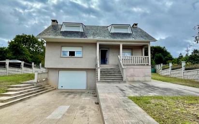 ¡Descubre tu nuevo hogar a solo 3 km de Lugo! Este estupendo chalet independiente te ofrece un equilibrio perfecto entre la tranquilidad de un entorno natural y la comodidad de tener todos los servicios próximos. Con preciosas vistas a la ciudad, esta vivienda se encuentra en un espacio residencial que garantiza seguridad y serenidad. En perfecto estado de conservación, el chalet se distribuye en tres plantas. La planta primera cuenta con una amplia cocina, un salón-comedor acogedor, un dormitorio, un baño completo y una lavandería. En la planta segunda encontrarás tres dormitorios adicionales y otro baño completo. La planta baja es un verdadero lujo con su garaje, una segunda cocina, un baño completo, una sala de máquinas y una bodega. La finca, totalmente cerrada y con algo de desnivel, dispone de una puerta de entrada automatizada y un pozo de barrena. La parcela tiene una superficie de 1.200 m² y esta propiedad fue construida en 2005. Cuenta con calefacción mediante caldera de gasoil. No pierdas la oportunidad de vivir en un lugar con una ubicación privilegiada. ¡Ven a conocer tu futuro hogar!