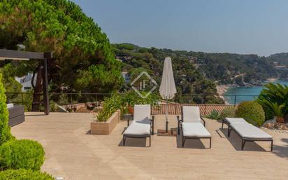 Esta espectacular vivienda se sitúa en una espectacular parcela frente al mar en el exclusivo complejo residencial de Martossa, justo al sur de la bonita ciudad costera de Tossa de mar en la Costa Brava. La vivienda de 5 dormitorios se asienta sobre una gran parcela de 873 m². Todo ello con magníficas vistas al mar y total privacidad. La vivienda, de 392 m², cuenta con 4 dormitorios dobles con baño privado, vistas al mar y un apartamento para el servicio. Todos los dormitorios disfrutan de acceso directo a una gran terraza y gozan de unas magníficas vistas. En la planta baja, encontramos el salón-comedor con la cocina abierta que da acceso a una bonita terraza. En esta misma planta encontramos dos dormitorios en suite, cada uno con su baño amplio y completo, y con preciosas vistas al mar. En la planta superior encontramos otro dormitorio en suite que también goza de unas vistas espectaculares y de total privacidad. En la parte inferior encontramos la suite principal con vistas panorámicas desde la cama y con un espacioso cuarto de baño con bañera y ducha, y un vestidor. Esta habitación está directamente conectada con el fabuloso jardín de la propiedad. En la misma planta encontramos una sala de cine y una zona de spa muy amplia, con espectaculares vistas, incluso desde la sauna, y con salida directa al jardín. La parte inferior de la casa también dispone de una preciosa terraza con vistas al mar, tumbonas y zona chill out. En la misma zona se sitúa la sala de máquinas, el lavadero, la cocina auxiliar y el apartamento de servicio. La parcela tiene diferentes niveles que van descendiendo hacia el mar: la vivienda y la piscina están construidas en los dos niveles superiores, mientras que el jardín se distribuye en los niveles inferiores con varios miradores construidos especialmente para poder disfrutar de las maravillosas vistas que ofrece esta propiedad. La vivienda orientada al este se construyó originalmente en 1972 y posteriormente se renovó por completo en 2016. La vivienda viene equipada con aerotérmia frío/caliente, con paneles solares para la producción de agua caliente sanitaria y con suelos de mármol de Travertino. Esta es una casa ideal para quien busca una vivienda en una privelegiada y tranquila ubicación, en perfectas condiciones y con vistas exquisitas en una zona residencial exclusiva y privada de la Costa Brava.