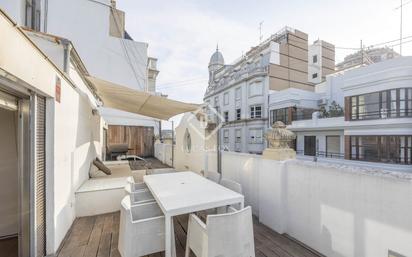 Exclusivo ático modernista en una de las mejores calles de Pla del Remei, junto a los jardines del río Turia y el emblemático Mercado de Colón. Una ubicación privilegiada que convierte esta vivienda en una oportunidad única en el corazón de Valencia. Desde el salón-comedor, amplio, soleado y con techos con vigas, accedemos a una espectacular terraza de 50 m² con agradables vistas a los jardines del Turia, el espacio perfecto para disfrutar del aire libre durante todo el año. La cocina, independiente y muy luminosa, cuenta con mobiliario en blanco y gran capacidad de almacenaje. Completa la zona de día una sala actualmente habilitada como sala de cine, que puede integrarse fácilmente para crear un ambiente aún más amplio y diáfano. En la zona de noche encontramos un dormitorio principal muy luminoso, con acceso directo a la terraza principal, y dos dormitorios individuales que comparten una agradable zona de estudio con salida a una segunda terraza de 20 m². La vivienda dispone además de dos baños completos. Destaca su extraordinaria luminosidad, la tranquilidad, el encanto arquitectónico del edificio y el privilegio de contar con dos amplias terrazas en una de las calles más elegantes y demandadas de la ciudad. La vivienda dispone de suelos de madera natural, carpintería exterior con doble acristalamiento, calefacción individual por radiadores y aire acondicionado por splits. Necesita actualización, lo que permite adaptarla a las necesidades y gustos del futuro propietario.