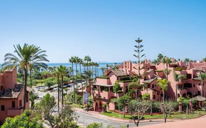 Precioso y espacioso apartamento en una de las zonas más prestigiosas de la Nueva Milla de Oro, ¡con vistas panorámicas al mar! Gracias a su ubicación en esquina, el apartamento cuenta con 3 dormitorios y 2 baños, una enorme terraza de 76 m² con orientación suroeste y espectaculares vistas panorámicas al mar, Gibraltar y África, un amplio salón-comedor, una cocina totalmente equipada de alta calidad con lavadero independiente. El apartamento está equipado con suelos de mármol, armarios empotrados, persianas y aire acondicionado frío/calor. El complejo cuenta con conserjería y seguridad, jardines tropicales en perfecto estado, piscina de verano, piscina cubierta, gimnasio y sauna. Goza de una ubicación ideal, a pocos pasos del mar, del paseo marítimo y de servicios locales como cafeterías, restaurantes, minimercado, salón de belleza, paradas de autobús y taxi, a 15 minutos en coche de las mundialmente famosas ciudades de Puerto Banús y Marbella, y a 10 minutos en coche de la encantadora Estepona. Además, el apartamento incluye plaza de aparcamiento para dos coches. Si buscas comodidad, espacio, vistas al mar debes visitar la propiedad.