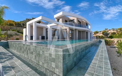 Villa de lujo de nueva construcción en venta en Benissa, junto a la Playa La Fustera, situada en una zona consolidada, a 300 metros (4 minutos andando) de la Playa La Fustera y de servicios (restaurantes, supermercado, parada de autobús…), a 800 metros (11 minutos andando) del Puerto Deportivo Les Bassetes, a 4 Km de Cala Advocat, a 4,4 Km de Cala Baladrar y muy bien comunicada con el centro urbano de Calpe y de Moraira. Esta villa disfruta de impresionantes vistas panorámicas al mar y a la Bahía de Moraira, y de estupendos amaneceres (orientación Este). Se encuentra ubicada en una amplia parcela de 1.170 m2 y cuenta con una superficie total construida de 475 m2 distribuidos en 2 plantas (+ planta sótano), de la siguiente manera: en la planta principal tenemos el hall de entrada, 2 amplios dormitorios (18 m2 + 16 m2, dormitorio principal con amplio vestidor), 2 baños (1 en-suite), magnífico salón comedor cocina de 55 m2 (concepto todo abierto, con isla), y amplio porche (con barbacoa y comedor de verano integrados), que se fusiona con la terraza exterior de 125 m2 donde tenemos una piscina rectangular de 12x4,5 metros con efecto sin fin. Se accede a la planta alta y a la planta baja a través de una escalera interior de bonito diseño. En la planta alta tenemos el vestíbulo y 2 impresionantes dormitorios (19 m2 + 14 m2), ambos con vestidor, baño en-suite y terraza privada. En la planta sótano (220 m2), tenemos una bodega muy bien equipada, una sala de cine de 22 m2, gimnasio, sauna, zona relax y piscina climatizada de 10x3,30 metros (con luz natural y con increíble ventana al interior de la piscina exterior), 1 baño completo, sala de juegos (sala multiusos) de 45 m2 (con luz natural), amplio lavadero y cuarto técnico. Esta magnífica residencia destaca por sus grandes ventanales en todas sus estancias, por su luminosidad, sus acabados y calidades. Está equipada con suelo radiante y con climatización por conductos (sistema aerotermia de mínimo consumo y máxima eficiencia), cocina de diseño moderno con muebles altos y bajos con campana extractora en techo con mando a distancia, equipada con electrodomésticos de alta gama (horno, microondas, lavavajillas, frigorífico y placa vitrocerámica), alarma, carpintería exterior de alta gama con vidrio de baja emisividad y con persianas automatizadas, carpintería interior con armarios forrados y puertas de paso de diseño con bisagras ocultas y cierre magnético, sanitarios suspendidos y grifería de alta gama, muebles de baño con espejo y mamparas en ducha, alicatados en baños y aseos en azulejo porcelánico y suelo de la vivienda de pavimento porcelánico de gran formato, iluminación LED en el interior de la vivienda y apliques en las fachadas exteriores de la vivienda, preinstalación alarma exterior, preinstalación cctv… Además, dispone de amplia zona de aparcamiento exterior para varios vehículos ubicada junto a la entrada principal de la propiedad. El jardín es muy bonito, de estilo mediterráneo, con muros de piedra natural y espacios diferenciados que generan entornos muy agradables y acogedores y además está equipado con riego automático (bajo mantenimiento) e iluminación exterior. Sin duda una magnifica propiedad a menos de 5 minutos andando de la Playa La Fustera (uno de los rincones más bonitos de la Costa Blanca). Para recibir más información sobre esta propiedad, póngase en contacto con AREA Costa Blanca. AREA Costa Blanca - su agente para propiedades en venta en Benissa - Costa Blanca - España. AREA Costa Blanca está orgullosa de ser una de las mejores agencias inmobiliarias en la Costa Blanca. En AREA Costa Blanca trabajamos para ofrecer el mejor servicio asesorando a nuestros clientes en la compraventa de propiedades inmobiliarias. Contamos con un equipo profesional de larga experiencia en el sector inmobiliario. Nuestro principio fundamental es la calidad del servicio prestado y la satisfacción del cliente. Nuestra experiencia y actitud, su garantía de éxito.