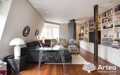 Imagina despertar cada mañana en este ático dúplex en pleno centro de Bilbao, donde la luz natural inunda cada estancia y las vistas despejadas te conectan con la esencia de la ciudad. Situado en un edificio señorial con ascensor a cota cero, este hogar combina el encanto de la arquitectura clásica con todas las comodidades modernas, en una ubicación privilegiada, rodeada de comercios, restaurantes, transporte público y los lugares más emblemáticos de Bilbao. En la planta superior te espera un amplio salón-comedor con techos altos y una acogedora chimenea, ideal para crear un ambiente cálido en los meses de invierno. Junto a él, la cocina totalmente equipada y un aseo de cortesía completan esta planta, perfecta para disfrutar de momentos en familia o con amigos. En la planta inferior, tres habitaciones exteriores —una de ellas con baño en suite— y dos baños completos garantizan comodidad y privacidad para todos. El edificio, de estructura de hormigón y fachada histórica, se encuentra en excelente estado, con el tejado recién renovado. La vivienda incluye trastero y ofrece una magnífica orientación sur, lo que asegura luminosidad durante todo el día. Si buscas un hogar único, lleno de luz y encanto en el corazón de Bilbao, contáctanos y agenda tu visita hoy mismo.