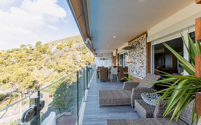 Bellamar Alto – Espectacular piso con vistas inmejorables al mar y la naturaleza Disfrute de una vivienda única en una de las mejores zonas de Castelldefels. Este piso de 155 m² le ofrece impresionantes vistas al mar, todo Castelldefels y acceso directo a un parque natural por la parte trasera, combinando naturaleza y confort en un solo lugar. Cuenta con 5 habitaciones (3 de ellas dobles), una acogedora bodega o sala de fiestas de 25 m², perfecta para reuniones familiares o con amigos, 2 baños completos y 1 aseo. La fabulosa terraza de 40 m² permite disfrutar de las mejores puestas de sol y momentos al aire libre. Además, dispone de lavadero independiente y parking para 2 coches. El piso está equipado con ascensor, suelos de parquet de gran calidad, cocina abierta muy luminosa y con magníficas vistas, amplio salón con acceso directo a la terraza, creando un espacio diáfano y elegante. La zona comunitaria es excepcional: gran piscina con vistas panorámicas, zona de barbacoa y pista de tenis para disfrutar de su tiempo libre sin salir de casa. Si busca exclusividad, calidad y un entorno privilegiado, este piso le enamorará. No hay nada igual, venga a visitarlo y déjese sorprender por sus excelentes acabados y su inmejorable ubicación. Bellamar es una de las zonas residenciales más exclusivas de Castelldefels, ubicada en las colinas sobre el núcleo urbano y apreciada por su privacidad, tranquilidad y vistas panorámicas al mar Mediterráneo y al Parque Natural del Garraf. El barrio se distingue por sus viviendas de alto standing, villas lujosas, amplias parcelas con jardines y piscinas, y una arquitectura adaptada al relieve natural. Se caracteriza por ofrecer un entorno privilegiado rodeado de naturaleza, pinares y montañas por un lado, y kilómetros de playas de arena fina al otro. Su ambiente es ideal para familias y personas que buscan calidad de vida, exclusividad y cercanía tanto a Barcelona (a solo 20 minutos) como al aeropuerto internacional (a 15 minutos). Bellamar es especialmente popular entre residentes de alto perfil, como deportistas, actores y profesionales internacionales, gracias a su ambiente seguro, la oferta de escuelas internacionales cercanas y la variedad de opciones gastronómicas y de ocio de la zona. En resumen, Bellamar es sinónimo de exclusividad, naturaleza y vistas incomparables, combinando la tranquilidad de una zona residencial selecta con la proximidad a servicios y la ciudad.