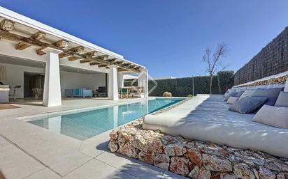 Lucas Fox presenta esta magnífica villa de alto standing en venta en Arenal d'en Castell recientemente construida. La villa cuenta con un diseño minimalista y con toques rústicos y elementos modernos, con el fin de ofrecer el máximo confort. La casa se asienta sobre una parcela de más de 600 m². La vivienda ofrece 160m² más 30m² de un elegante porche que conecta la zona de estar de la vivienda con la zona de piscina mediante un gran ventanal con puertas correderas. Todo el interior goza de muchísima luz natural, gracias a sus amplias estancias y a sus grandes ventanales. Consta de una amplia zona de estar que ofrece un gran salón con cocina abierta con office, todo ello conectado directamente con la terraza exterior tipo chill-out y con la piscina. La casa tiene, además, tres dormitorios dobles con baños privados y una terraza superior tipo solárium con vistas parciales al mar. El jardín rodea toda la casa y es de fácil mantenimiento, siguiendo un estilo mediterráneo y con riego por goteo. La vivienda dispone de sistema de Aerotermia con suelo radiante , aire acondicionado y bomba de calor por conducto individual en cada dependencia, carpintería de aluminio de la marca Cortizo , serie Corvison , suelo de cerámica de 90x90 uniforme en toda la casa tanto interior como exterior incluido solarium, pasillos exteriores y vaso de piscina , zona chili out , porche con vigas de madera de más de 200 años de antigüedad recuperadas de viejos conventos , piscina, riego por goteo , jardín mediterráneo , cámaras de seguridad y alarma . Si busca una villa de altas calidades que ofrezca todas las comodidades y se encuentre a escasos minutos de la playa, se trata de una excelente opción. Póngase en contacto con nosotros para más información, o para concertar una visita.