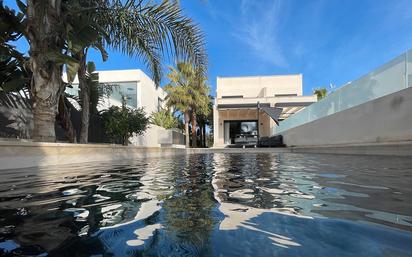 Superficie construida 126 m2 | superficie vivienda 120 m2 | Salón | cocina americana |3 dormitorios | 3 baños | lavadero | aire acondicionado frio y calor | jardín | balcón y terraza | piscina | solar de 328 m2 En la planta baja se encuentra: Salón comedor con cocina abierta, 1 dormitorio doble con armarios empotrados, baño en suite, lavadero, pérgola sobre la terraza que da al jardín con piscina. En la primera planta: El dormitorio principal con armario empotrado, baño en suite y terraza de 11 m2 mirando al mar. Un segundo dormitorio doble, también con armarios empotrados y una terraza de 7 m2 mirando hacía el campo. En la segunda planta se encuentra el solárium de más de 45 m2 con vistas despejadas, tanto hacia el mar como hacía el campo. El solar esta totalmente vallado y tiene suficiente espacio delante la casa para aparcar 2 coches.