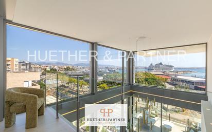 Este excepcional ático dúplex se encuentra en una exclusiva residencia de nueva construcción en una ubicación privilegiada en el Paseo Marítimo de Palma de Mallorca. La propiedad de alta calidad se completó en 2023 y combina un diseño moderno, calidad de construcción de primera clase y una ubicación privilegiada a pocos minutos a pie del casco antiguo. El amplio salón-comedor con cocina americana de alta calidad se abre a una terraza cubierta con vistas al puerto y al mar. La elegante distribución de las habitaciones ofrece el máximo confort y un ambiente luminoso. El ático dispone de cuatro dormitorios, cada uno con su propio cuarto de baño en suite, así como un aseo adicional para invitados. Lo más destacado es la azotea privada con vistas al mar y su propia piscina, un refugio exclusivo sobre los tejados de Palma. La moderna residencia también ofrece a sus residentes una elegante piscina comunitaria, amplias terrazas y una zona de bienestar y spa. La oferta incluye una plaza de aparcamiento subterráneo y un trastero.