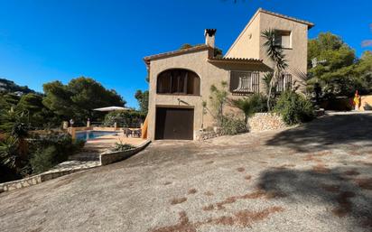 Esta villa en Moraira está ubicada en la prestigiosa zona El Portet, solamente 3 minutos en coche de la conocida playa de arena El Portet. La villa está en un entorno muy tranquilo, rodeada de una pinada, lindante a una zona verde y solamente 900 m de la playa. Es un lugar muy privilegiado para aquellos que buscan privacidad absoluta en plena naturaleza y al mismo tiempo cercanía a la playa y al pintoresco pueblo de Moraira. La villa se compone de 3 dormitorios, 2 baños y salón comedor. En la planta principal se encuentra el dormitorio principal con un baño amplio, la cocina y el salón comedor con chimenea de leña. Una escalera nos lleva a la planta superior donde se ubican 2 dormitorios más. En esa zona hay aire acondicionado con split. En la planta sótano hay un garaje y un baño con ducha, muy cerca de la piscina. Esta zona es ideal para otro dormitorio más o para convertirlo en un estudio. La piscina está a la altura del garaje con mucha privacidad. La villa está en perfecto estado. La última reforma era en 2004. Esta villa en estilo mediterráneo necesitaría una actualización y con una decoración adecuada se puede convertir esta propiedad en una oasis de relax, apto para vivir todo el año o para alquileres turísticos. Nuestra interiorista Luna ALBA puede convertir esa propiedad en un hogar con ambiente mediterráneo único, personalizado a su gusto. Si desea una ampliación, nuestra arquitecta Dalia ALBA puede aconsejarla. Design Villas Moraira tiene su propio equipo de construcción. No pierda esta ocasión única. Póngase en contacto con nosotros y organizamos una visita.
