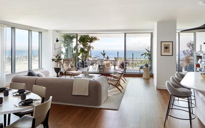 Desde lejos ya divisamos este maravilloso edificio, que ya forma parte de un nuevo punto de referencia en Barcelona. Edificio desde el principio creado para ser un proyecto verdaderamente innovador, edificio que marcará un nuevo referente en la vida de lujo. Una propiedad concebida y construida principalmente para el disfrute de residentes, pero también para lugareños de Barcelona y visitantes para mirar y admirar. Al entrar nos recibe el servicio de conserjería que nos atienden maravillosamente, y nos acompañan al apartamento, a través de unos de los ascensores. Entramos en el apartamento, y entramso a habitación principal, la master con su gran sala de baño, acabados de porcelanato en paredes y piso de la marca Porcelanosa. El lavamanos simple o doble de superficie sólida y tocador con cajones integrados, diseñado por Odile Decq. El espejo de ancho completo hasta el tocador, y la Iluminación LED empotrada. La bañera de superficie sólida diseñadas por Odile Deco en dormitorios principales con pie independiente. Nos adentramos en el apartamento y entramos en la cocina integrada, totalmente equipada que combinan perfectamente con una sala de estar y comedor de planta abierta. Los elementos interiores hechos a medida, como islas de cocina, tocadores, baños y manijas de puertas diseñados por el arquitecto Odile Decq enfatizan la atención al detalle en todas las habitaciones. Todas las estancias tienen salida a la maravillosa terraza esquinera, acristalamiento en toda su altura y sistema de puertas correderas a terrazas. Tiene muros cortina: ventanas que se pueden abrir. Terrazas al aire libre a medida con cubiertas de bambú con barandilla de vidrio curvado, Iluminación LED, con salida de agua y toma eléctrica. Este edificio se encuentra en Diagonal Mar/Forum. Este es un barrio emergente que ha experimentado y experimenta un crecimiento intensivo con nuevos proyectos e inversión pública. Se encuentra junto al Barcelona Tech Hub 22, uno de los más importantes Tech Hub en Europa. Esta excepcional ubicación, combinando las extraordinarias vistas al mar, terrazas y proximidad a playas, comercios y transporte público, lo hace único.