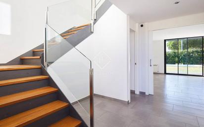 La vivienda se encuentra en Sant Vicenç de Montalt, a pocos minutos de la playa, la estación de tren y el puerto deportivo. La zona es conocida por contar con algunas de las mejores playas del Maresme, un estilo de vida tranquilo y exclusivo. Además, destacan en los alrededores los campos de golf y el reconocido Port Balís. La parcela tiene una superficie de casi 800 m² y está orientada al sur-oeste, lo que permite disfrutar de mucha luz natural durante todo el año. La casa, de 266 m² construidos, es muy cómoda y se distribuye en dos plantas: - En la planta baja encontramos un amplio y luminoso recibidor con techos de doble altura, un salón-comedor con acceso directo al jardín, una cocina totalmente equipada, y un dormitorio tipo suite con baño completo. En esta planta hay también una habitación más pequeña con un baño completo al lado, ideal como dormitorio de invitados, despacho o trastero. Además, dispone de garaje con capacidad para dos vehículos. - En la planta superior se ubican dos habitaciones dobles y un baño completo con bañera. El jardín es llano y cuenta con una piscina privada y un porche de verano, perfectos para disfrutar del exterior. La vivienda está equipada con placas solares, armarios empotrados, ventanas de aluminio con doble acristalamiento, suelos de parquet y gres, y jardín con césped natural.