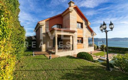 Se vende chalet en Sanxenxo, con amplia terraza. En un lugar privilegiado, con fabulosas vistas al mar desde prácticamente todas las estancias. Nos encontramos ante una vivienda que se construyó en el 2004, cuenta con diversas mejoras constructivas frente el proyecto inicial. La vivienda tiene una superficie aproximada de 385 metros que se distribuye en tres plantas. En el sótano está el garaje con capacidad para varios coches, un cuarto de instalaciones, un almacén, la lavandería y un baño completo. En la planta principal cuenta con un amplio salón comedor (en el origen había un dormitorio que se añadió al salón), la cocina complemente equipada y un baño completo. Desde la cocina y el salón podemos acceder a una maravillosa terraza con vistas espectaculares al mar. En la planta bajo cubierta está la zona de noche con 3 dormitorios, el principal en suite con baño completo y otros 2 dormitorios, otro baño completo que da servicio a estas estancias . Todos los dormitorios tienen acceso a una terraza. La vivienda tiene excelentes calidades, dispone de aspiración centralizada, calefacción por gas natural, carpintería de madera de roble, ventas de PVC tipo climalit con apertura oscilobatiente y rotura de puente térmico. La parcela está ajardinada, tiene una vegetación consolidada, cuenta con piscina, una barbacoa con salón cerrado ideal para eventos y una fuente de piedra. Es una vivienda lista para entrar a disfrutar. Si deseas más información o concertar una visita puedes llamarnos al teléfono 986 422 296 Rivera Real Estate. Carretera de Camposancos 75 - Vigo. Contamos con departamento de hipotecas y financiación, con el cual podrás conseguir las mejores condiciones del mercado. Ref C001104