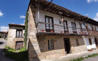 Casa de pueblo montañesa con amplia balconada de madera.