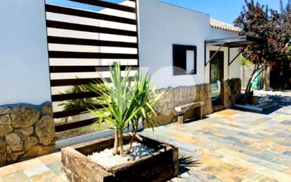 VOhome propiedades ofrece espectacular chalet independiente estilo ibicenco en 1 planta, con una ubicación inmejorable, en zona residencial tranquila pero próxima a servicios y comunicaciones. La vivienda se distribuye en hall recibidor con armario gabanero, aseo de cortesía, cocina semi-americana totalmente equipada con puerta corredera e isla, amplio salón-comedor a doble altura con chimenea cassete, triple orientación y salida al porche cubierto con toldo retráctil. El salón también cuenta con una estancia aneja de grandes ventanales que pudiera ser un despacho, gimnasio o incluso una cuarta habitación. La zona de descanso se compone de 3 dormitorios, todos con armarios empotrados, y 2 baños completos exteriores con plato de ducha, uno de ellos en suite. Carpintería interior lacada blanca. Paredes lisas. Suelos de gress y parquet. Ventanas de una hoja oscilobatientes de PVC y doble acristalamiento. Calefacción individual de gas natural con radiadores verticales cubiertos. A/C por splits en salón, comedor y suite principal. Ventiladores de techo. Orientación sur. Zona exterior consolidada que cuenta con jardín de césped natural y arboleda con riego automático, perímetro solado, piscina independiente con ducha de temperatura regulable, porche, cenador acristalado con pila de agua corriente, almacén, leñera, trastero, patio inglés y zona de aparcamiento para 3 vehículos (2 bajo techo) y acceso con puerta motorizada.
