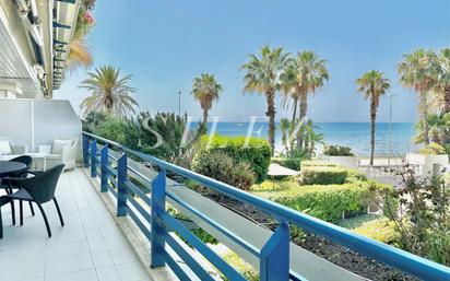 Confort, elegancia, lujo y exclusividad definen este espectacular apartamento situado en primera línea de mar, en la codiciada zona de Terramar, en Sitges. Podrás disfrutar de unas vistas inmejorables al mar Mediterráneo desde el sofá del salón o desde la cama de la suite principal. La vivienda, completamente exterior y ubicada en la primera planta, cuenta con 4 amplios dormitorios dobles, todos con acceso directo a las terrazas, cada uno con su baño y sus armarios empotrados. Tiene una superficie útil de 216 m², cuidadosamente distribuida para maximizar la luz natural y el confort. El apartamento dispone de dos amplias terrazas con vistas al mar y a la piscina con una superficie total de 71 m². La cocina-comedor es espaciosa y funcional, con salida directa al lavadero y a una de las terrazas, que da a los exuberantes jardines interiores del complejo. La otra terraza, con orientación frontal al mar, es perfecta para relajarte o disfrutar de una comida al aire libre. El apartamento ha sido recientemente actualizado. Incluye dos plazas de parking, 14 m² de trastero y mobiliario como en las fotos en el precio. Además, el complejo cuenta con vigilancia 24 horas, servicio de portería, varias piscinas, zonas ajardinadas con fuentes, y se encuentra a tan solo 100 metros del Golf de Terramar. Ideal tanto como residencia principal como segunda vivienda. Solo necesitas traer tu maleta y empezar a disfrutar de tu nuevo hogar junto al mar.