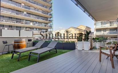 Ubicado en el bonito paseo marítimo de Badalona, este impresionante piso ofrece la oportunidad de vivir rodeado de vistas al mar y mucho sol, con el lujo de disfrutar del paisaje marino y la brisa todo el año. El inmueble de 106m2 según catastro con una gran terraza de 65m2 cuenta con 3 amplias y cómodas habitaciones y 2 baños, perfectos para una vida tranquila y relajada. Destaca su estupenda terraza y su zona chill out con vistas sobre el mar, que incluye una pérgola, ideal para disfrutar de momentos de descanso, como si estuvieras de vacaciones todos los días. Además, la comunidad ofrece una cuidada zona ajardinada central y una preciosa piscina comunitaria, a la que tendrás acceso directo desde tu terraza, ofrece una plaza de parking opcional (30.000€) brindándote aún más confort y bienestar. Este piso está situado en una de las zonas más demandadas de Badalona, al lado de un exclusivo hotel de lujo, lo que lo convierte en una ubicación privilegiada para vivir a escasos metros del mar. No dejes pasar la oportunidad de vivir en un lugar único. Contáctanos y descubre esta joya. Edificio nuevo , en perfecto estado. Accesos , ascensor , portería..