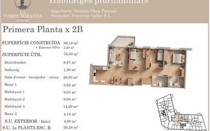 Habitatge familiar amb 86,10 m² construïts i 76,50 m² útils, amb una distribució molt pràctica i funcional que aprofita al màxim cada espai. La zona de dia és còmoda i lluminosa, amb una sala-menjador de bona mida que permet diferents configuracions. Les tres habitacions fan que sigui una opció ideal per famílies o per a qui necessita estances addicionals per treballar o rebre convidats. El balcó exterior aporta llum natural i ventilació, millorant la sensació d’amplitud interior. L’orientació sud garanteix una excel·lent entrada de llum natural durant tot el dia. Característiques 3 habitacions 2 banys Safareig Balcó 3,60 m² Orientació sud