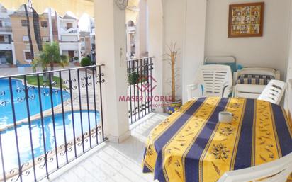 MASER WORLD te presenta este magnifico piso situado en el residencial de Pueblo Salado, a tan sólo 150 metros de las playas de La Ermita y La Isla. Este residencial consta con 3 piscinas comunitarias siendo 1 de ellas climatizada, jardines y parques. Este piso situado en primera planta se distribuye en un amplio salón , 3 habitaciones dobles con armarios empotrados, 1 baño completo, cocina independiente totalmente amueblada , lavadero y una terraza con vistas a la piscina. Además, esta vivienda se vende con una plaza de garaje incluida en el precio. Se entrega totalmente amueblado y equipado y posee ventiladores de techo en todas las estancias. ¡¡¡No lo dudes más y llámanos!!! Para más información visite nuestra web: www.maserworldproperties.com. Tfno: 968595824.